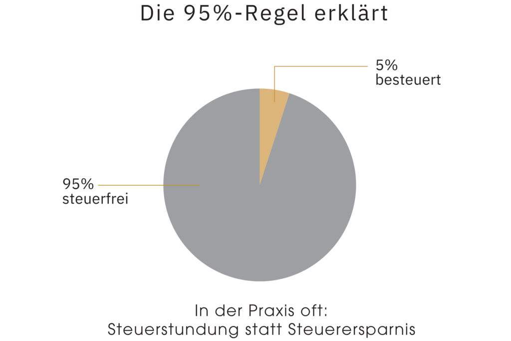 Dividends can be disregarded when calculating income; 5% is treated as non-deductible business expenses on a flat-rate basis – hence the rough “95% logic”. There is a comparable mechanism for capital gains.